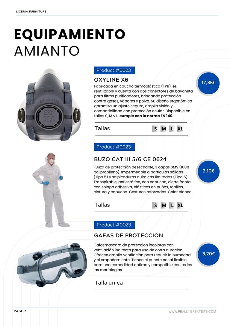 Asegúrate de que todos los EPIs que adquieras cumplen con las normativas europeas de seguridad. La mayoría de los EPIs de calidad incluyen el marcado CE, que certifica que cumplen con los estándares de seguridad. Además, es importante que los equipos cuenten con los certificados correspondientes para trabajos con amianto (como la norma EN 149 para respiradores).